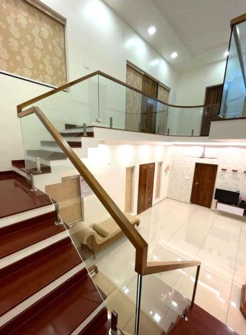 Modern and stylish glass handrails that ensure safety without compromising on elegance — ideal for staircases, balconies, and open spaces.